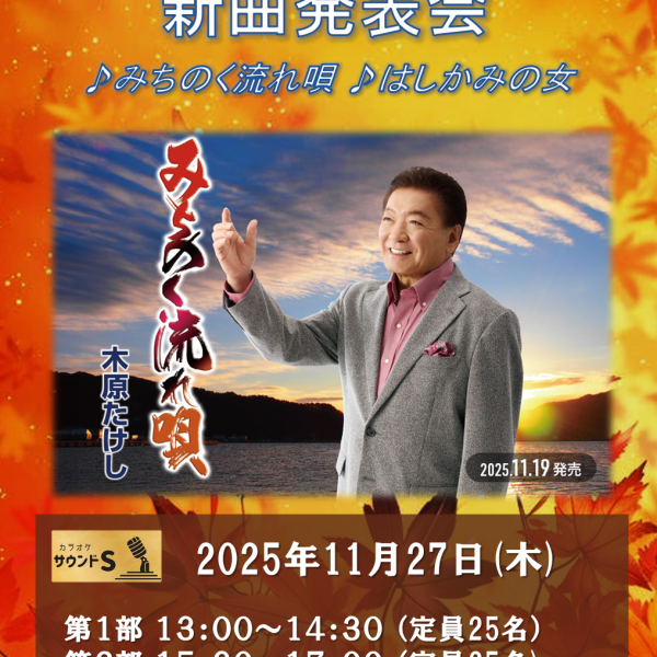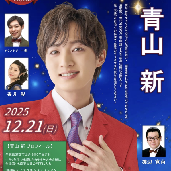 当店 サウンドS 主催で12月21日(日)に演歌第7世代の実力派 「青山 新」さんをゲストにお迎えしディナーショーを開催します! 日頃大変お世話になっている 渡辺 寛尚さん、香月 彩さんのおかげで実現したことです。また、… 続きを読む »Xmas ディナーショー開催します(12月21日)